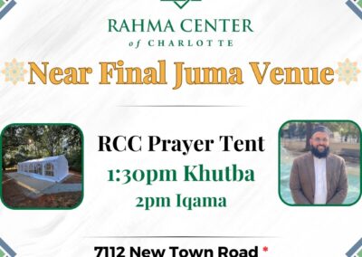 The Rahmah Center of Charlotte (RCC) is a non-profit, learning, and religious organization. It was established in January 2022 by local Muslims living in Charlotte.
